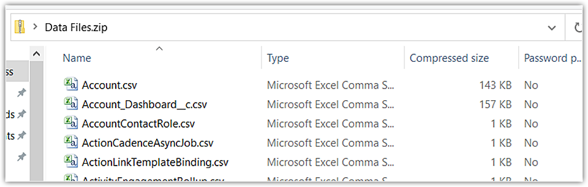 Totuși, reține că în cadrul unui fișier zip nu ar trebui să existe alte fișiere zip. Trebuie să conțină fișiere .CSV în interiorul folderului zip.