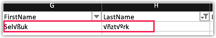 Numele contactului cu caractere speciale din fișier este prezentat mai jos: