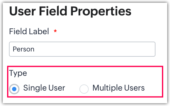 Câmpul de căutare utilizator servește la asocierea utilizatorilor cu înregistrările lor respective din module. Există două tipuri de câmpuri de căutare utilizator: