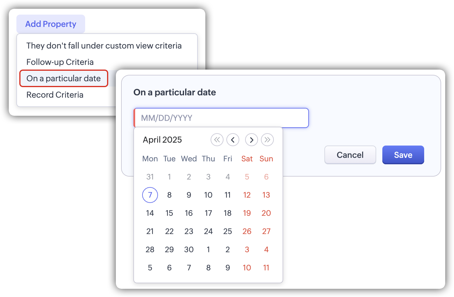 - Dezînscriere bazată pe criterii: Când un utilizator creează un cadence bazat pe o vizualizare personalizată, înregistrările care îndeplinesc criteriile definite în vizualizarea personalizată vor fi înscrise în cadence.