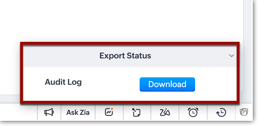 Jurnalul de audit nu captează istoricul de autentificare al utilizatorilor. Istoricul de autentificare este captat în Zoho Directory. Jurnalele de audit captează acțiunile pe care fiecare utilizator le efectuează în legătură cu înregistrările și alte acțiuni de configurare, în ordine cronologică.
