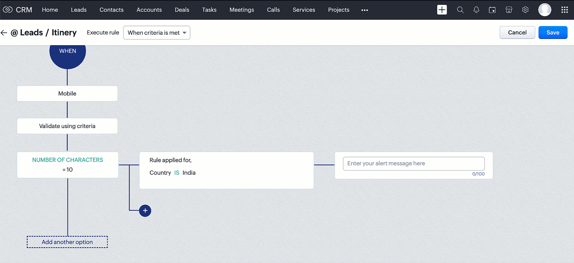 Apasă Add another option pentru a schimba valoarea câmpului principal și configurează diferite mesaje de alertă după cum este necesar.