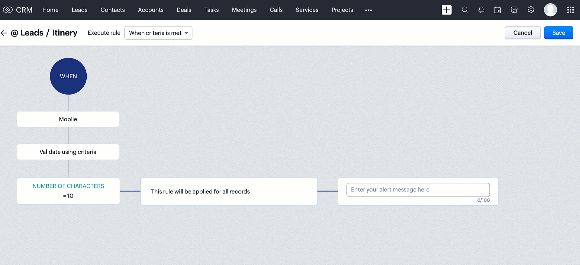Cum configurez o regulă de validare pentru modulele mele CRM?