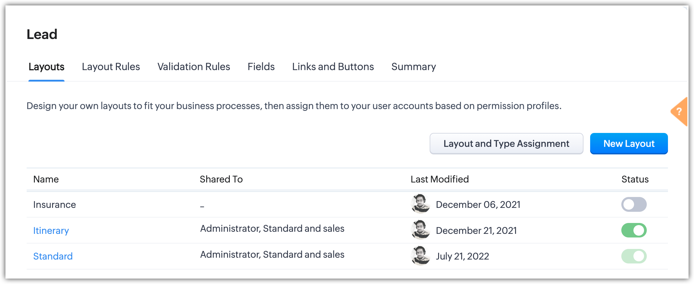 - Accesează Configurare > Personalizare > Module și Câmpuri