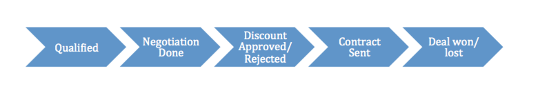 De exemplu, o tranzacție în CRM trece prin diferite etape până la Urmărire - Calificare, Negociere și Aprobare discount. Fiecare dintre aceste etape se numește "Stare".