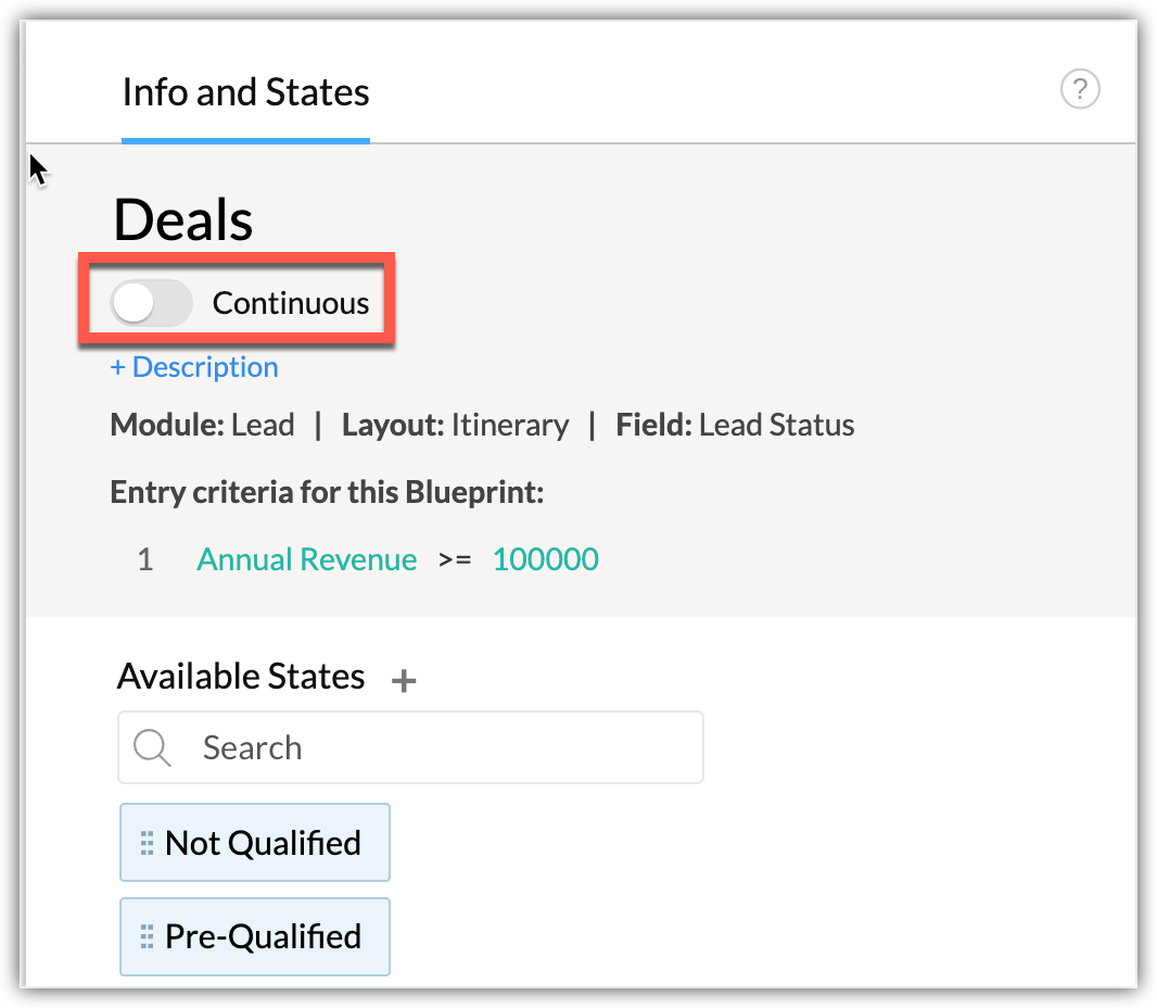 Pentru a utiliza eficient Blueprint în Zoho CRM, este esențial să înțelegi elementele sale de bază - Stări și Tranziții - și cum funcționează împreună pentru a crea un flux de lucru fără întreruperi.