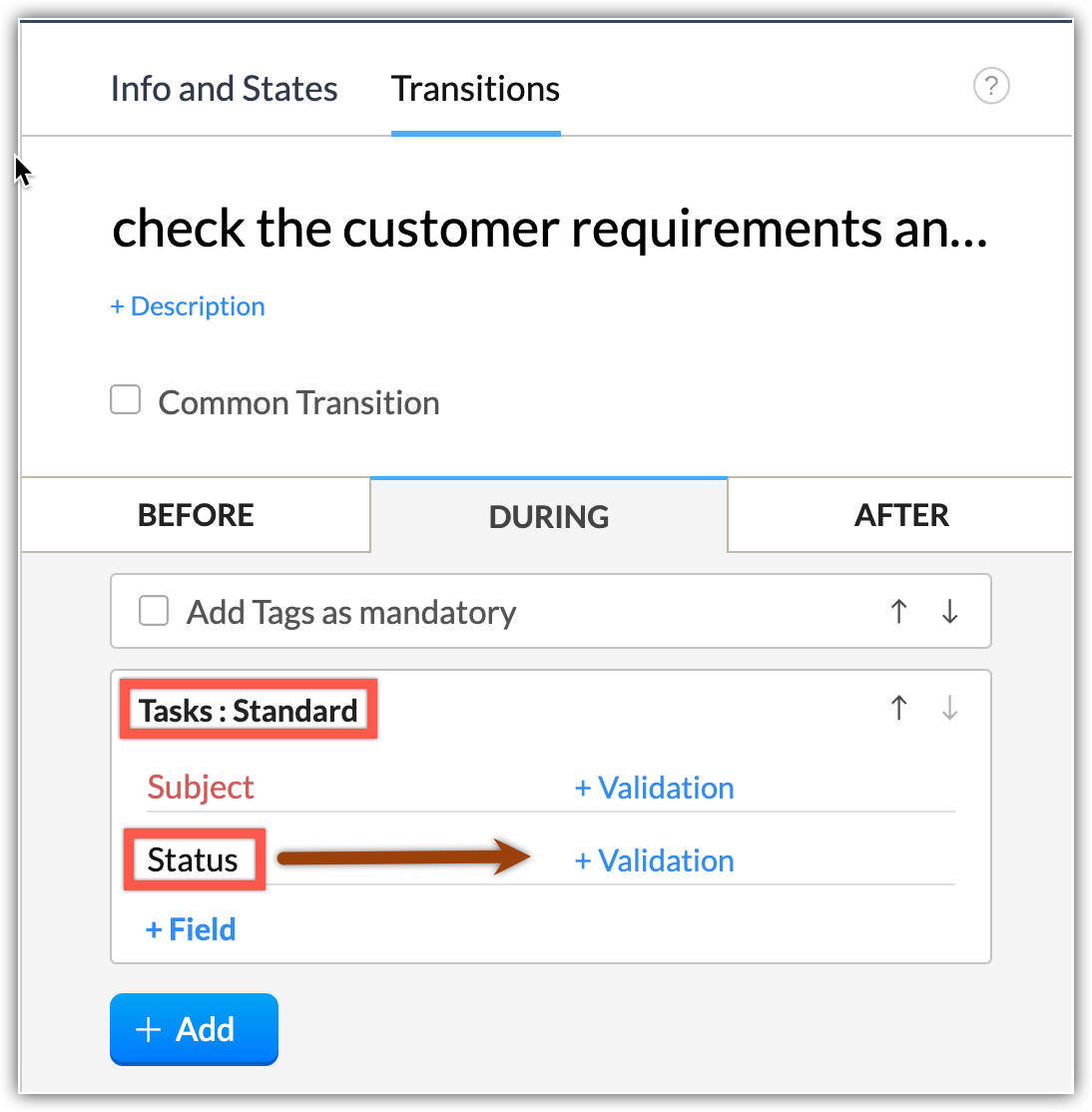 Da, poți impune actualizarea statusului unei sarcini în setările During Transition.