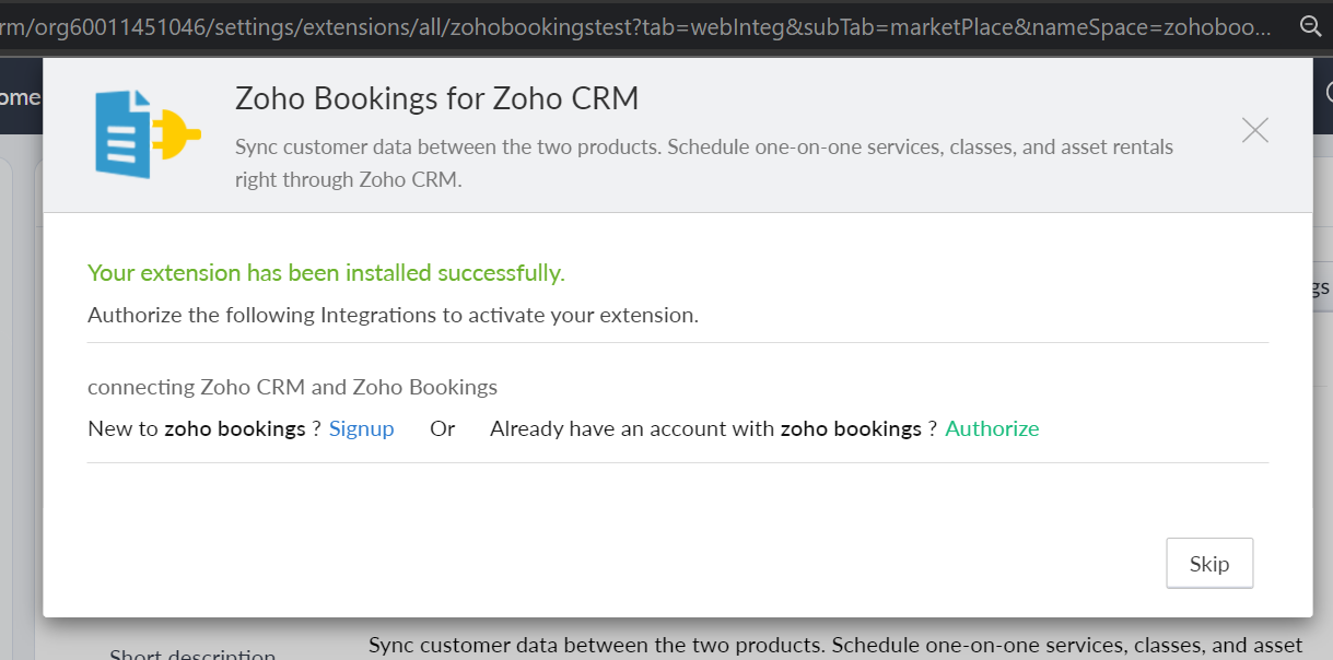 - Mergi la Zoho Marketplace și caută „Zoho Bookings for Zoho CRM" în secțiunea Toate extensiile.