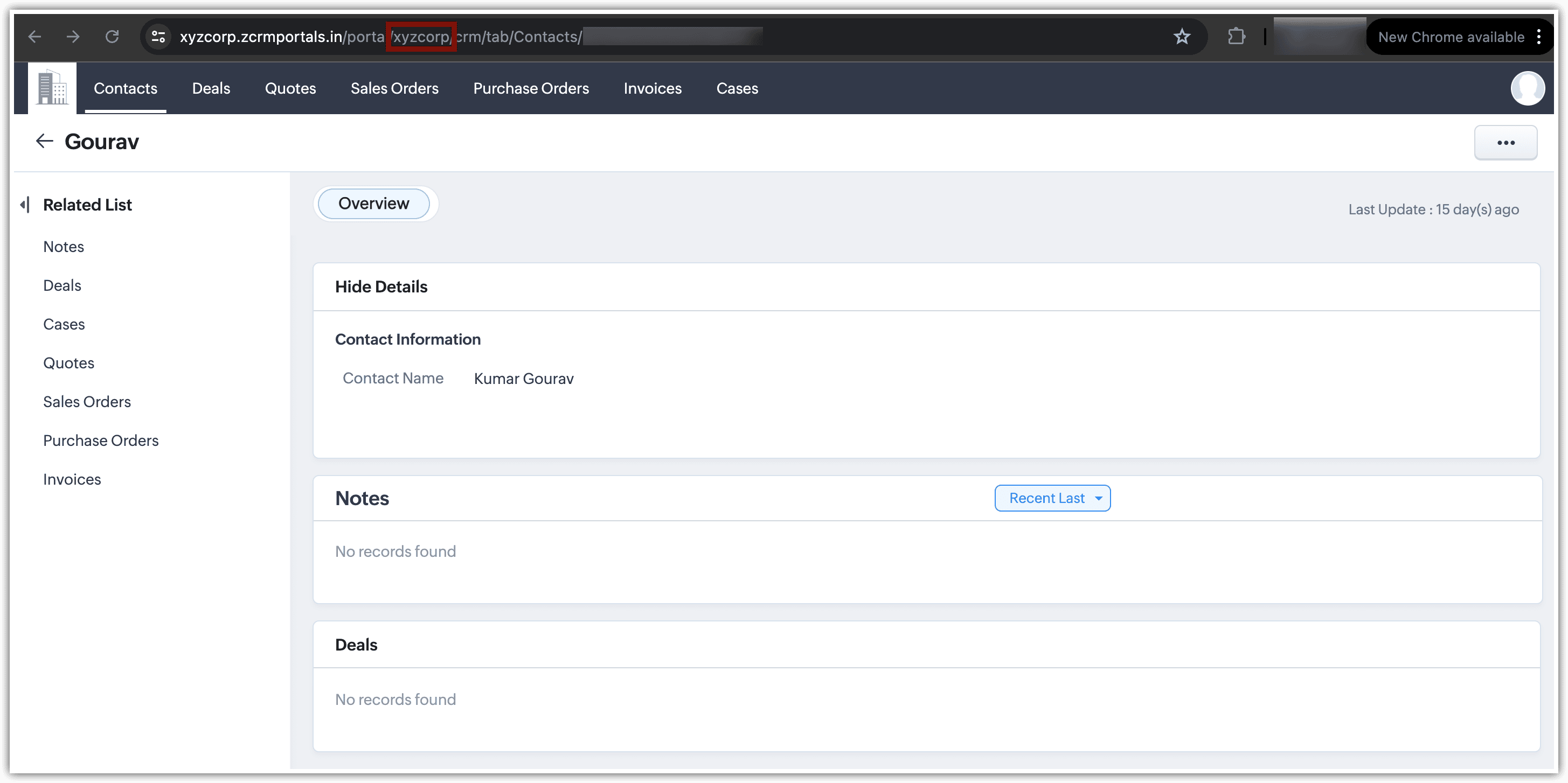 Cu portalurile din Zoho CRM, poți invita utilizatori, cum ar fi contactele, să se alăture. Când acești utilizatori primesc o invitație și se autentifică în portal, vor vedea un URL cu o serie de numere, de exemplu: xyzcorp/crm/tab/contacts/74764395. xyzcorp sau numele organizației pe care l-ai configurat la crearea contului tău CRM este ID-ul unic de portal al utilizatorului. Acest ID este comun pentru toți utilizatorii acelui portal.