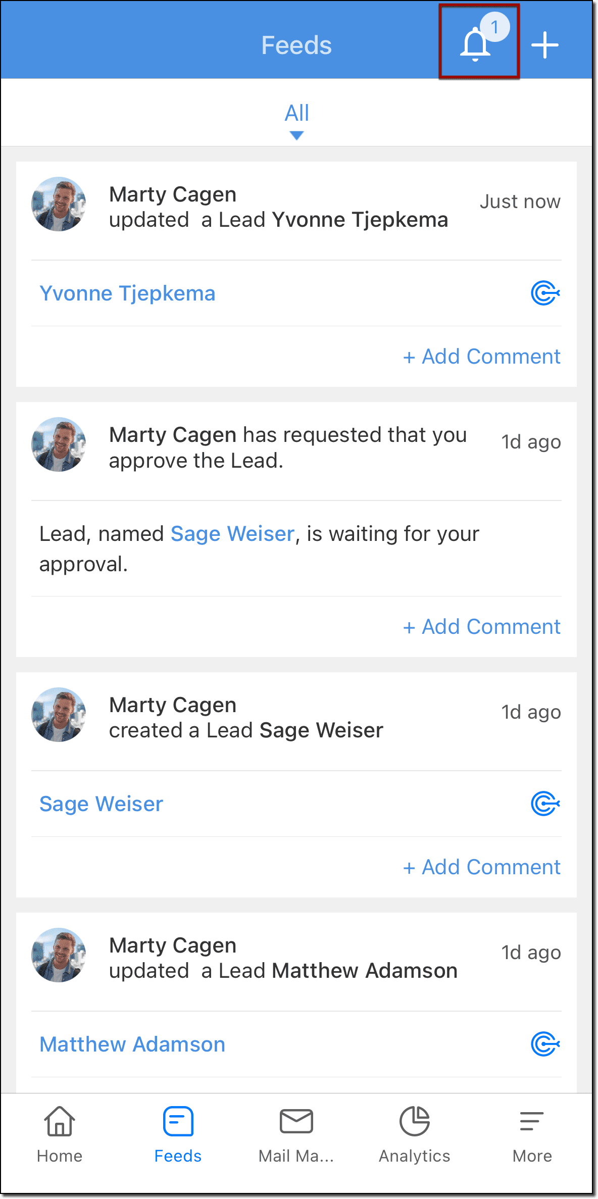 Colaborează folosind fluxurile de știri în aplicația Zoho CRM pentru iOS