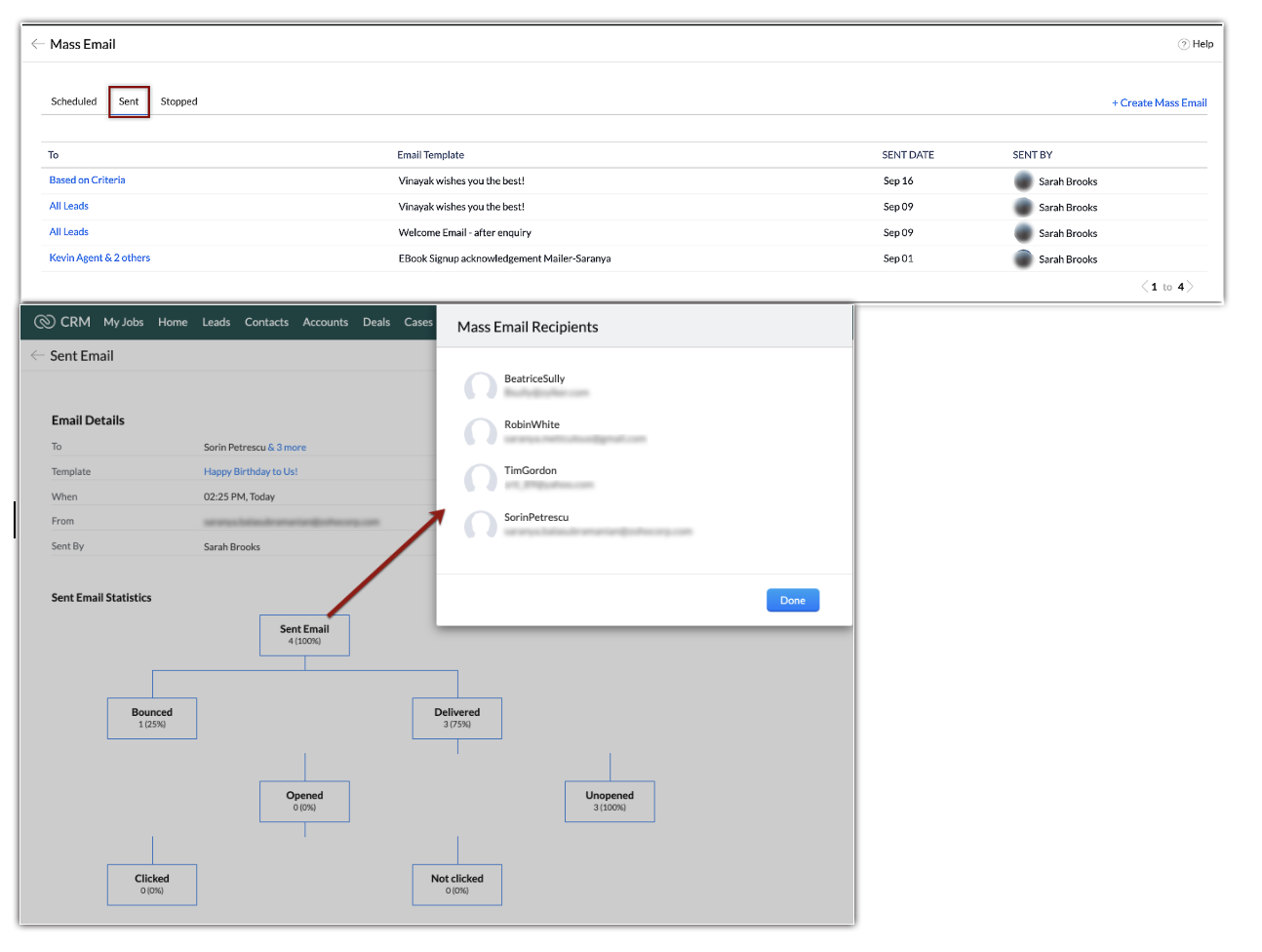 - Fă clic pe fila Sent de pe pagina Mass Email.