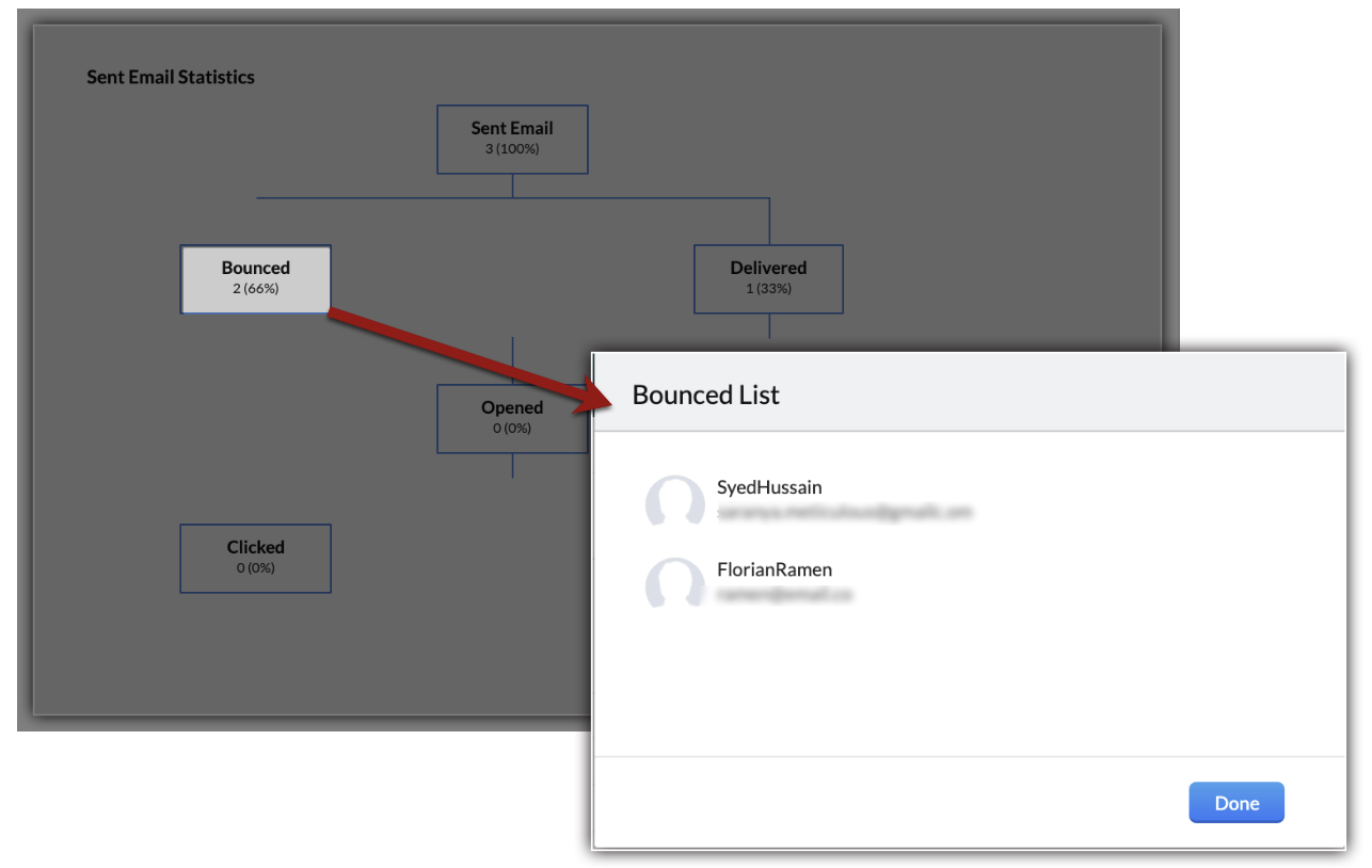 - Fă clic pe Bounced pentru a găsi destinatarii la care emailul nu a fost livrat.