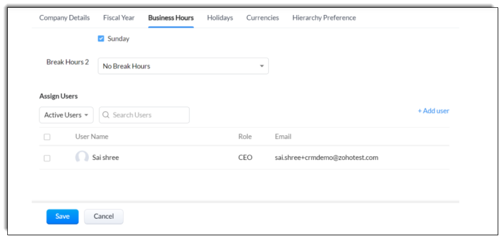 Dacă organizația ta are birouri în toată lumea, programul de lucru urmat va varia în funcție de fusul orar căruia îi aparțin. Așadar, când atribui o activitate unui utilizator, este important să verifici disponibilitatea acestuia. Zoho CRM simplifică acest proces cu o funcție numită 'Business Hours'.