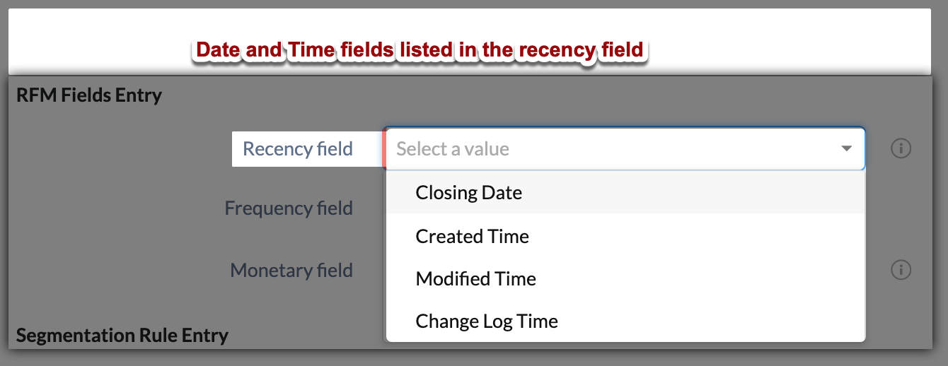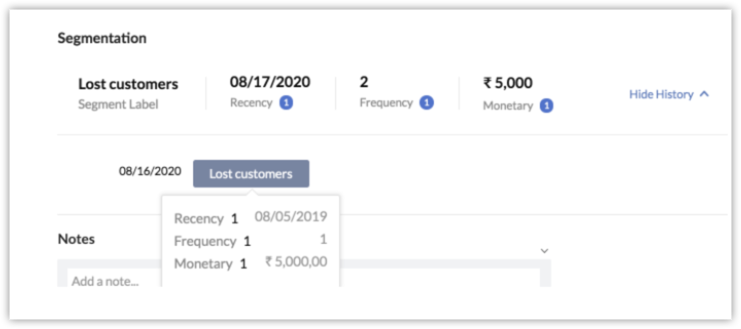 Da, rezultatele segmentării, adică valorile de recență, frecvență și valoare monetară pentru fiecare contact, vor fi afișate în platformele Zoho Campaigns și Zoho Marketing Automation doar dacă aceste platforme sunt integrate cu contul CRM.