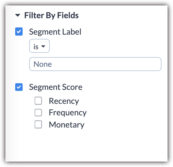 Da, poți filtra înregistrările folosind câmpurile - Etichetă segment și Scor segment (valori RFM) în filtrul avansat al modulului căruia i se aplică segmentarea.