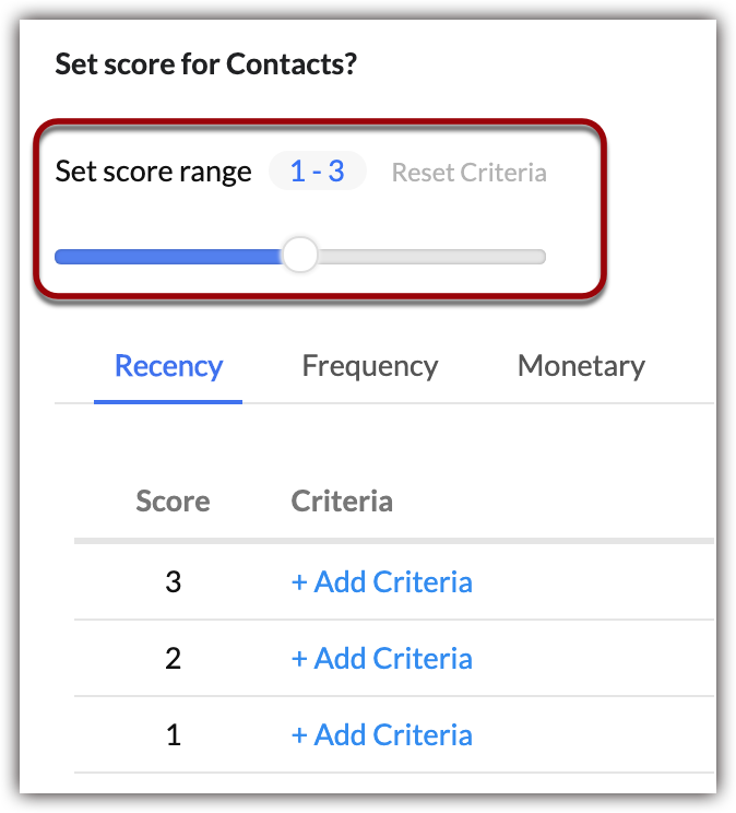 Scorul de segmentare este setat implicit într-un interval de 1-5. Poți ajusta intervalul de scor deplasând cursorul la poziția dorită, cum ar fi 1-2, 1-3 sau 1-4.