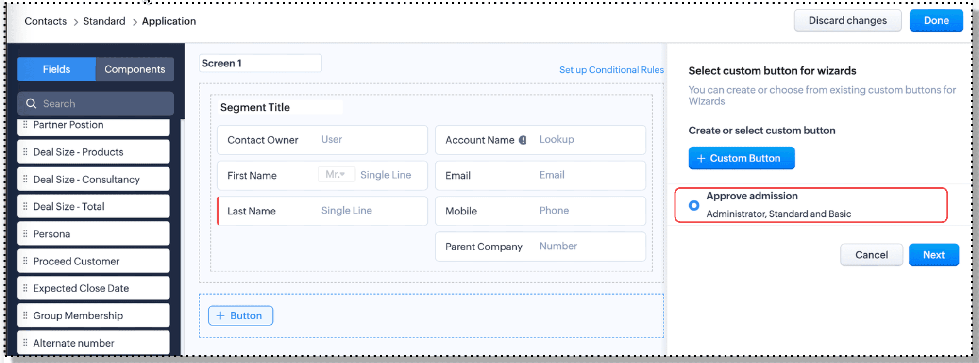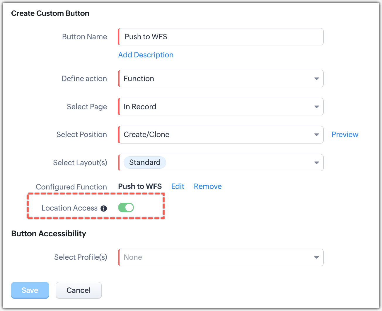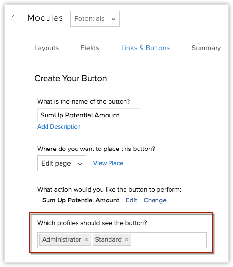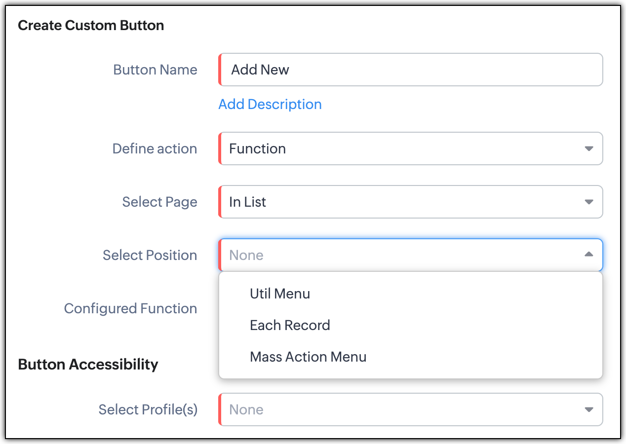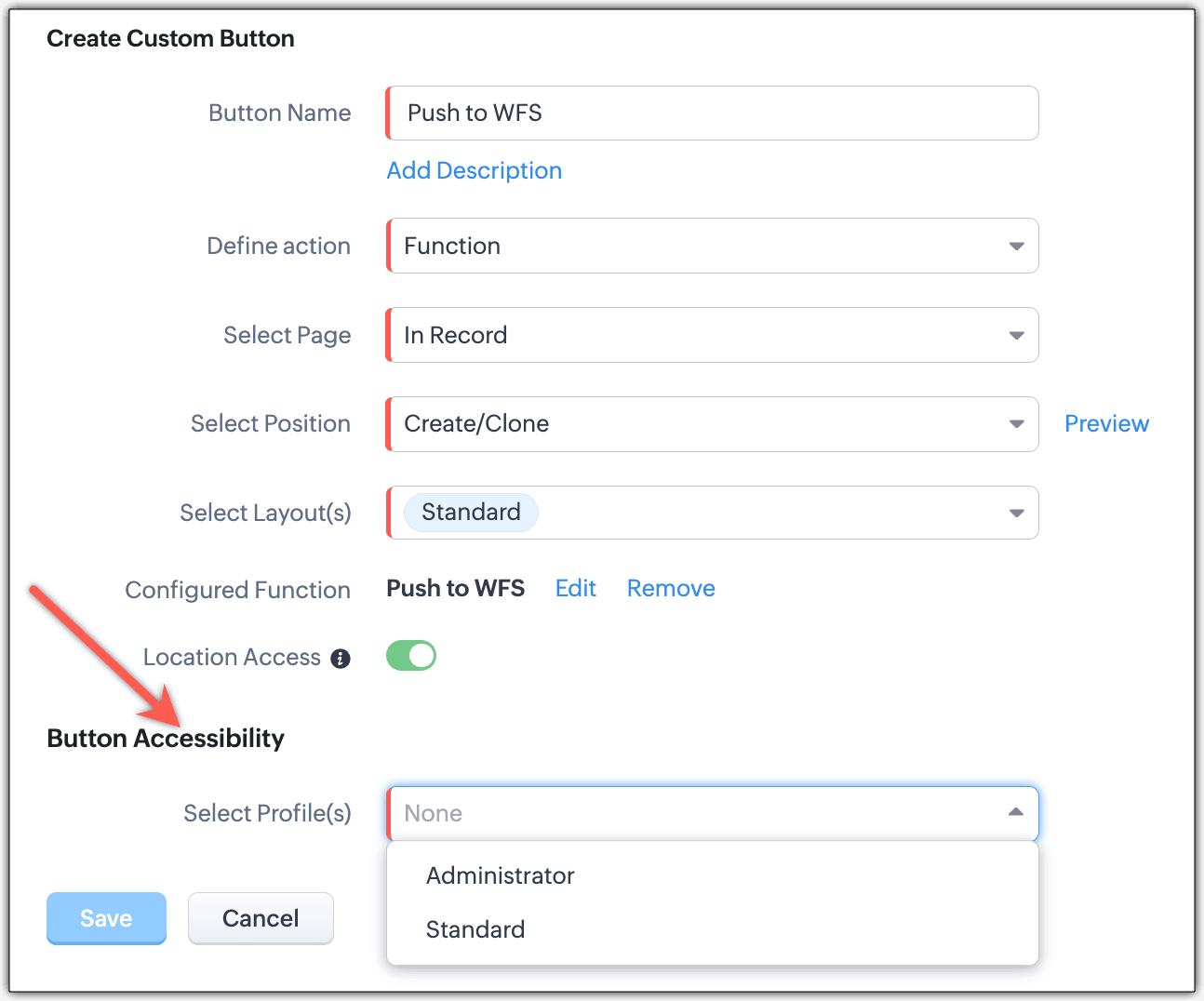 - Determină accesibilitatea butonului. Poți alege profilurile care pot accesa butoanele create pentru modulele tale.
