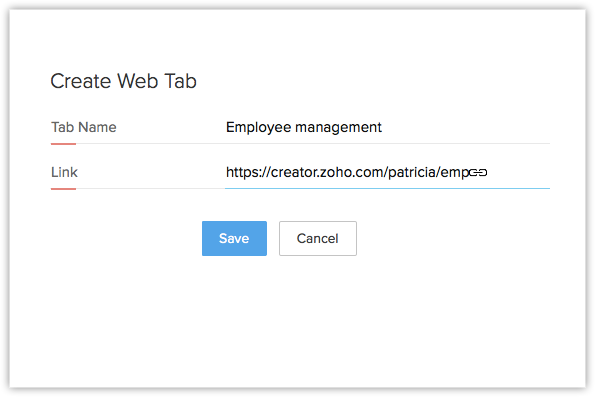 - URL-ul web tab-ului va fi afișat. Poți adăuga câmpuri de îmbinare conform cerințelor tale. Apasă Save .