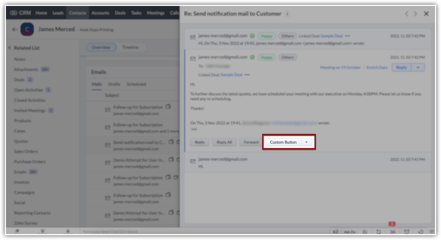 Administratorul Zoho CRM poate șterge butonul personalizat oricând.