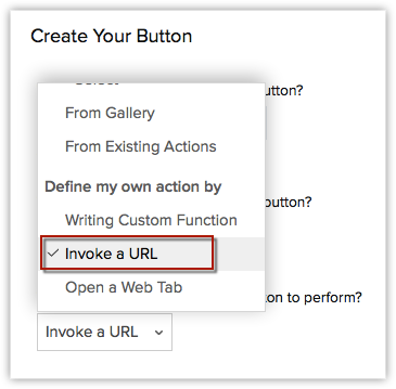 - Creează un buton personalizat și alege acțiunea butonului ca Invoke a URL din lista derulantă.