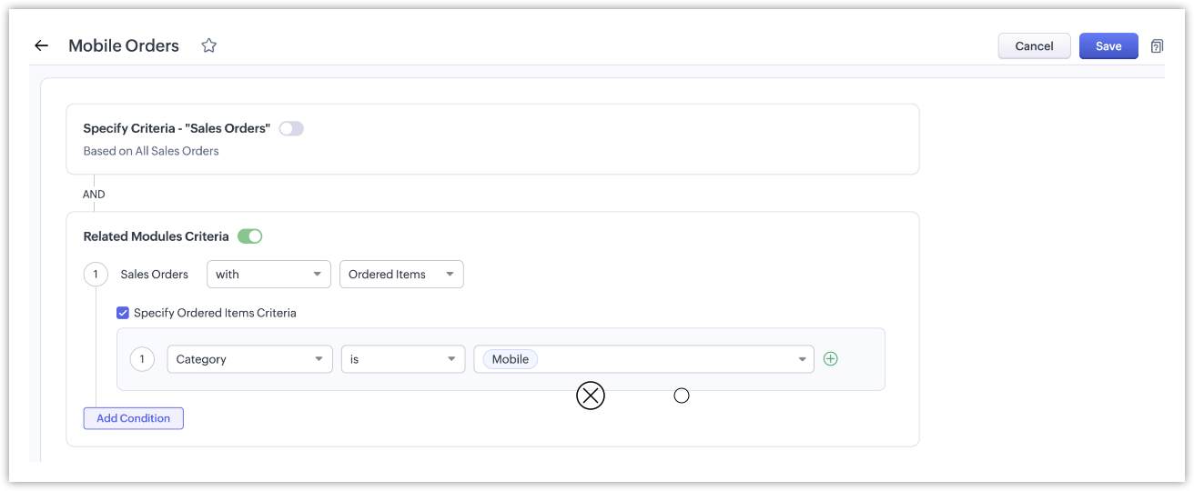 - Butoanele Salvare și Anulare din vizualizarea personalizată vor fi ascunse în timp ce editezi tiparul de criterii.