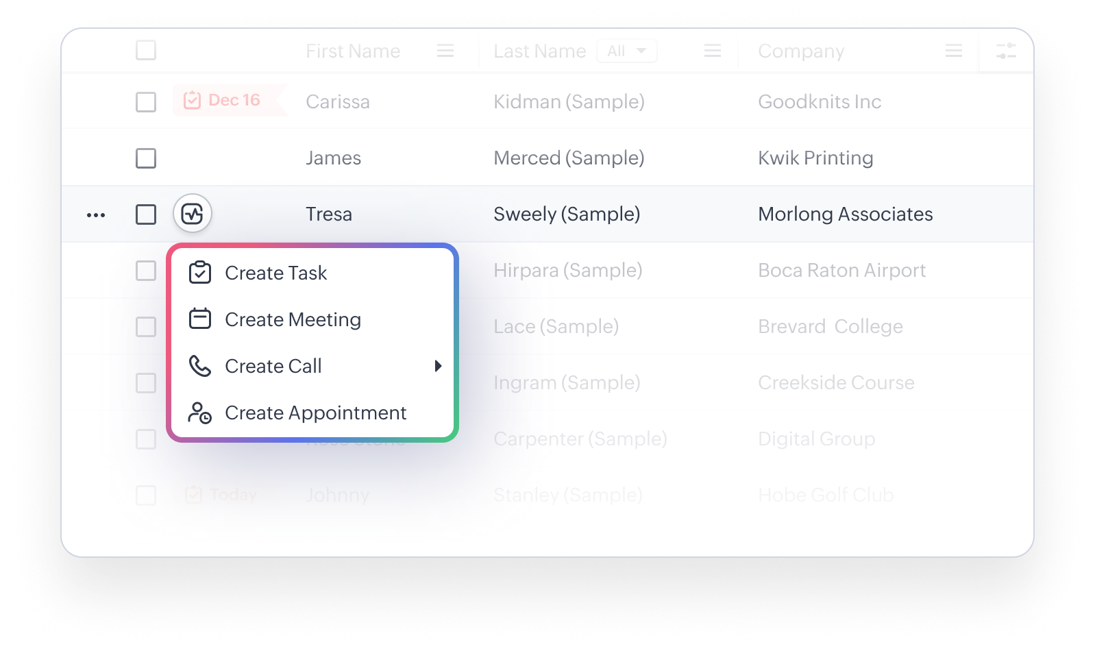 O vizualizare de tip listă este o grupare a înregistrărilor bazată pe un set definit de criterii. Vizualizările de tip listă sunt utile pentru afișarea datelor specifice clienților conform cerințelor tale de business. De exemplu, poate dorești să faci follow-up la lead-urile create în ultima săptămână sau să revizuiești sarcinile restante sau poate vrei să filtrezi tranzacțiile mari. Cel mai bun mod de a gestiona aceste scenarii este să filtrezi înregistrările folosind vizualizările de tip listă. Poți folosi vizualizările de tip listă și pentru schimbarea proprietarilor înregistrărilor, ștergerea înregistrărilor în masă și trimiterea de emailuri în masă.