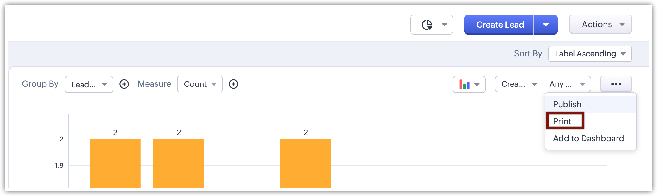 Chart View este disponibil în edițiile Enterprise și Ultimate ale Zoho CRM.