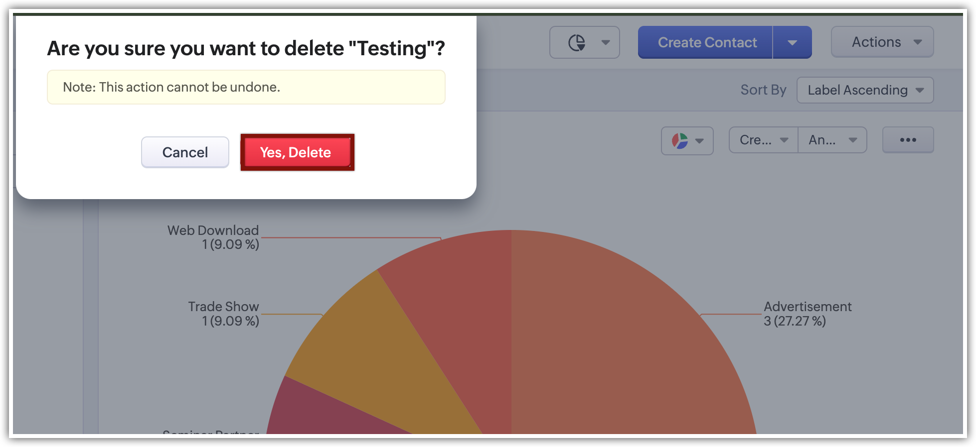 - Dă clic pe Yes, Delete pe pagina Are you sure you want to delete this "Chart View".