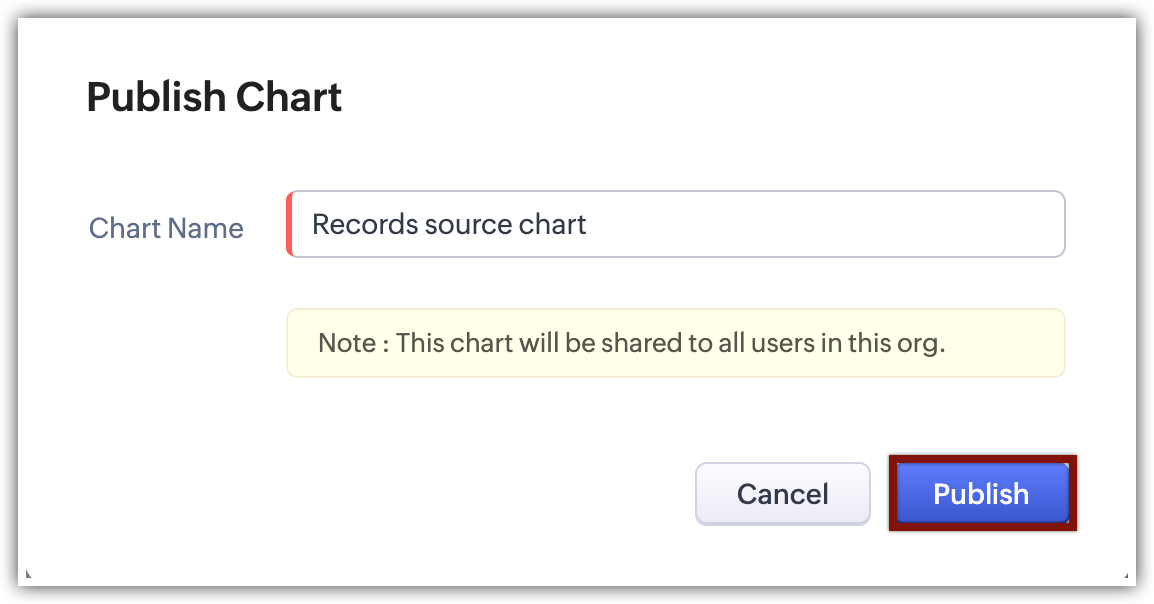 - Pe pagina Publish Chart, introdu Chart Name și apasă Publish.