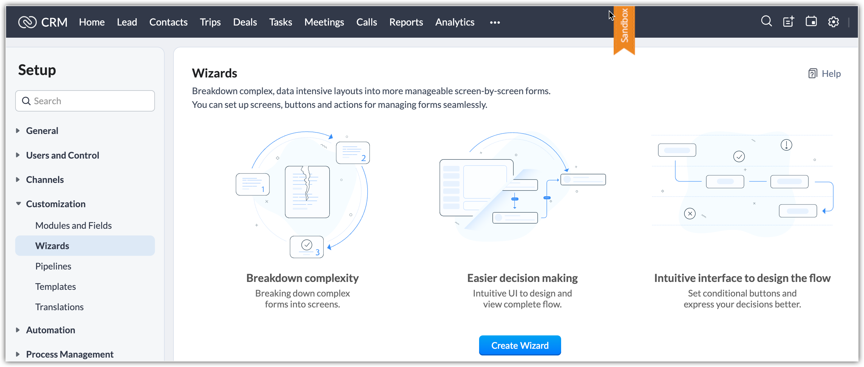 Nu, Wizards nu pot fi folosite pentru crearea înregistrărilor prin formular web, import sau API. Sunt disponibile doar atunci când înregistrările sunt create manual în modulul CRM.