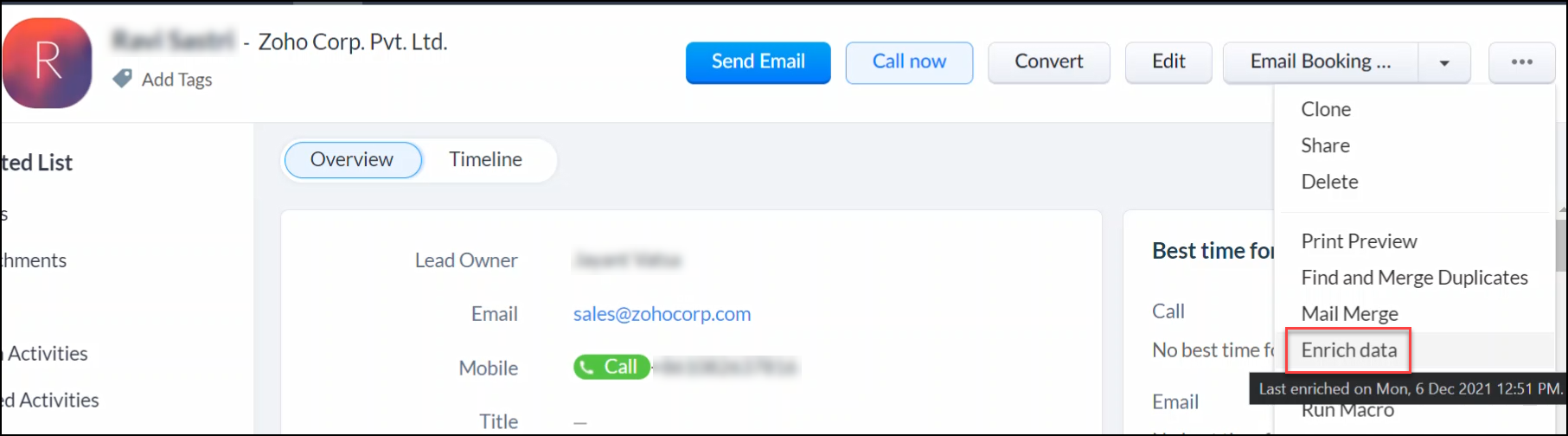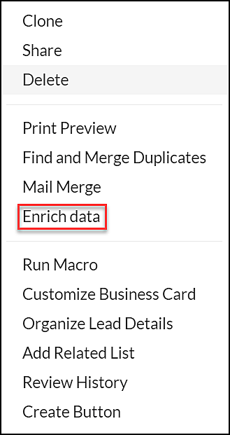 Fă clic pe pictograma More de pe pagina de detalii a înregistrării și selectează Enrich data.