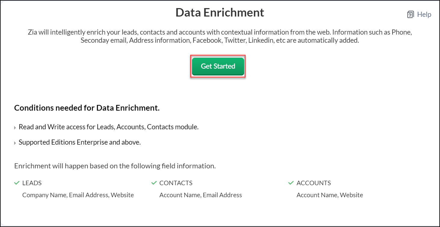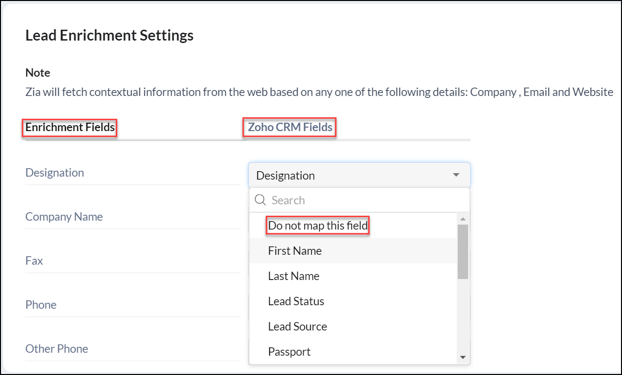 2. Cum pot activa îmbogățirea datelor în Zoho CRM?