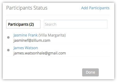 Dacă invitatul nu face parte din baza de date CRM, atunci doar adresa de email a invitatului este afișată în secțiunea Participanți.