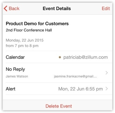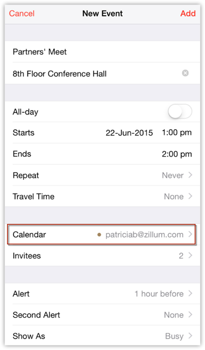 Poți vedea întâlnirea sincronizată din Zoho CRM în Calendarul iOS.