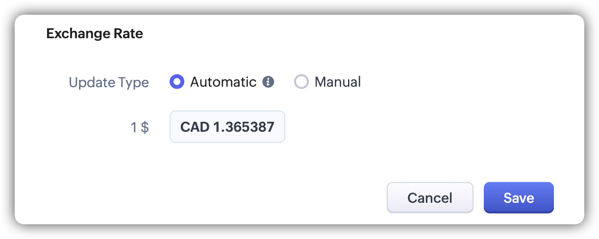 Poți gestiona modul în care cursurile de schimb sunt actualizate folosind metode de actualizare manuală sau automată, în funcție de cerințele afacerii tale.