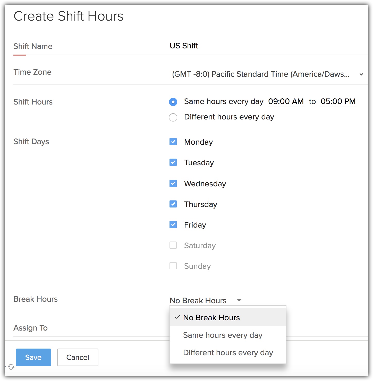 - Fă clic pe Create Shift Hours .