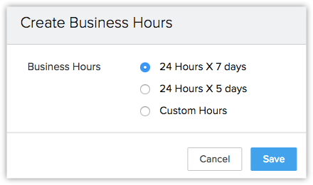 a) 24 Hours x 7 Days - Selectează această opțiune dacă compania ta funcționează 24/7. b) 24 Hours x 5 Days - Selectează această opțiune dacă compania ta funcționează 24/5.