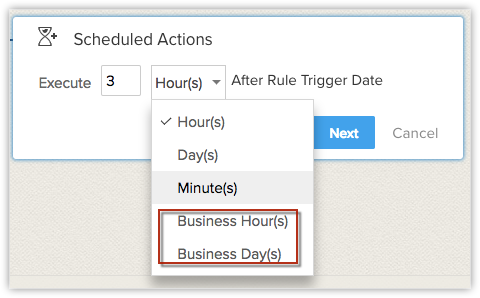 - Selectează Business hour(s) / Business day(s) din lista derulantă.