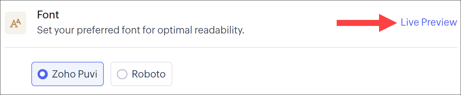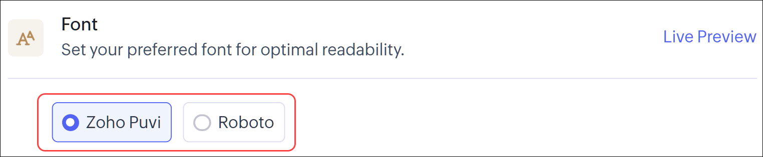 Utilizatorii pot alege o familie de fonturi care se potrivește preferințelor lor. Fontul selectat va fi aplicat în toată interfața CRM. Opțiunile disponibile acum sunt: