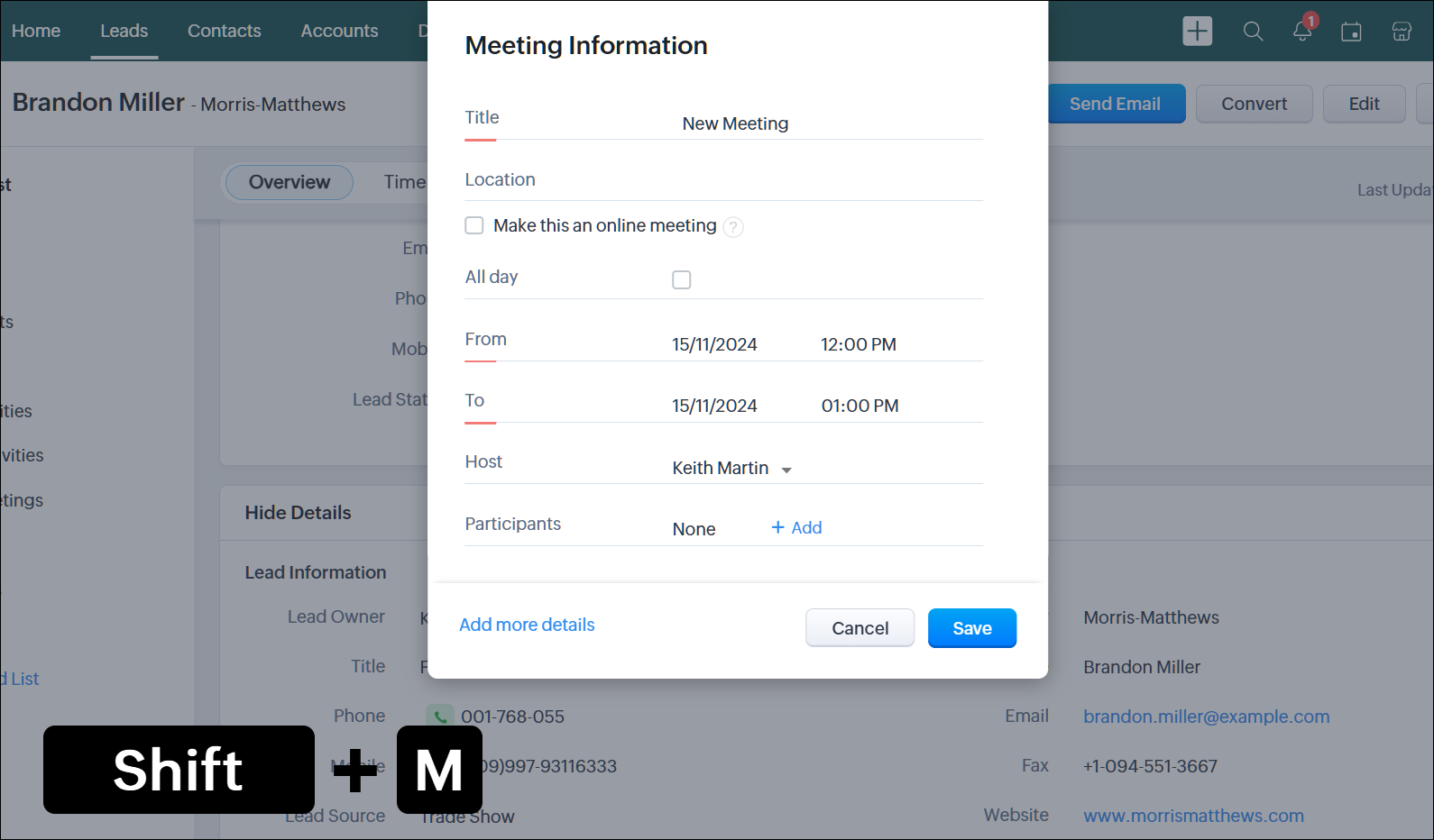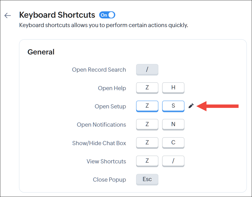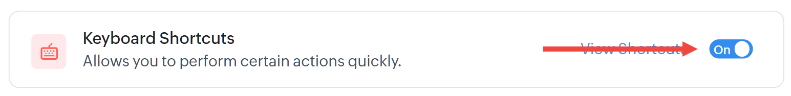 - Configurează scurtăturile după dorință. Poți afla mai multe despre scurtăturile de tastatură și cum să le configurezi folosind acest document de ajutor: Scurtături de tastatură în Zoho CRM.