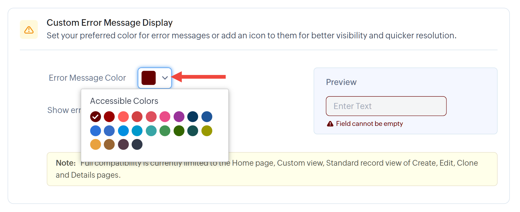 Notă: Aceasta este în prezent pe deplin suportată pe pagina de start, vizualizarea personalizată și vizualizările standard ale înregistrărilor (detaliu, creare, editare, clonare).Font