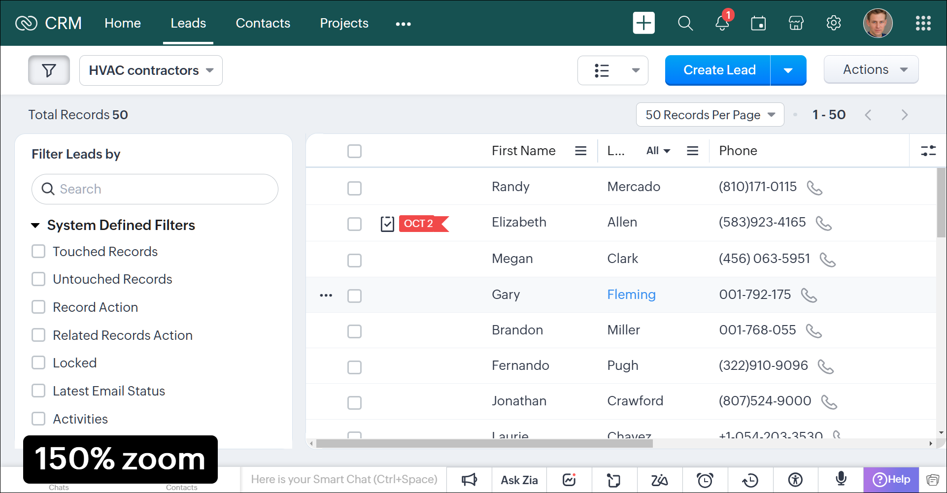 - Odată ce ești mulțumit de dimensiunea fontului, te poți bucura de o interfață CRM în care textul este mult mai confortabil de citit!