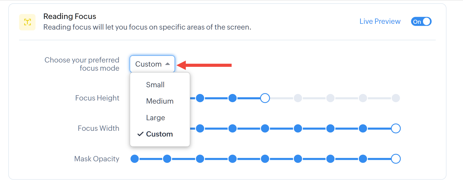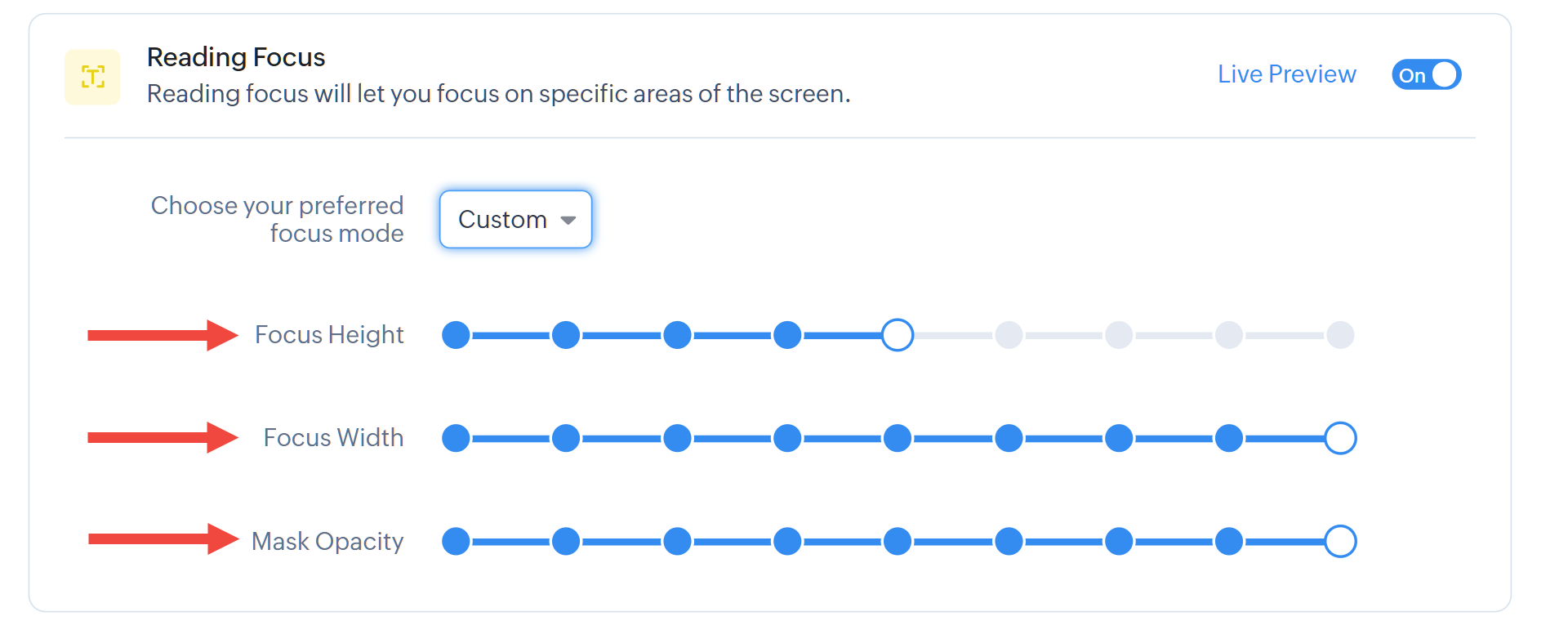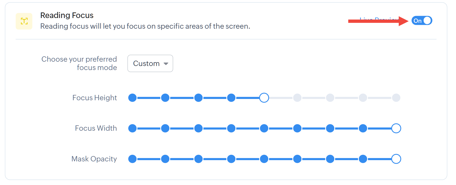 - Dă clic pe comutatorul toggle pentru a activa sau dezactiva această opțiune. Masca de citire va apărea imediat.