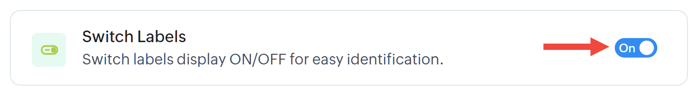 În aceste cazuri, utilizatorii pot activa opțiunea Etichete comutator. Aceasta afișează etichete pe comutatoare pentru a arăta starea lor curentă. Acest lucru le face imediat comprehensibile pentru utilizatorii cu probleme de vedere a culorilor și chiar pentru utilizatorii care nu sunt familiarizați cu interfața.
