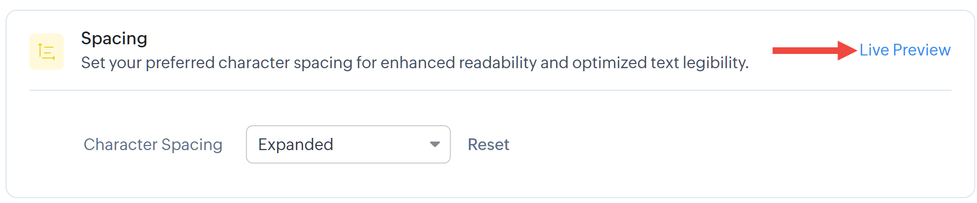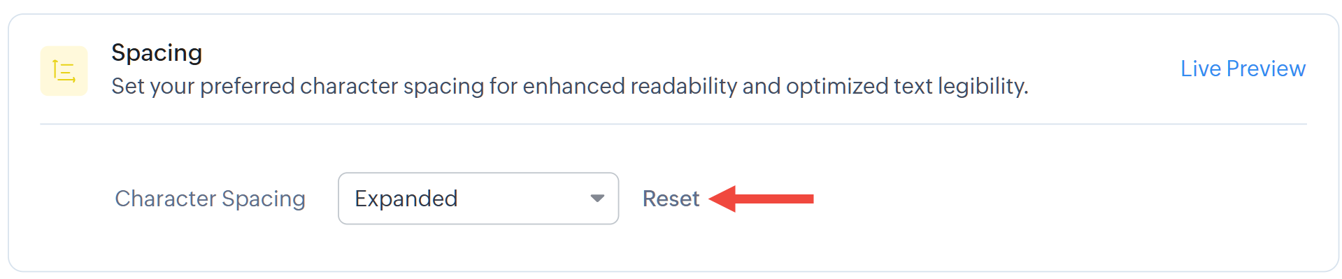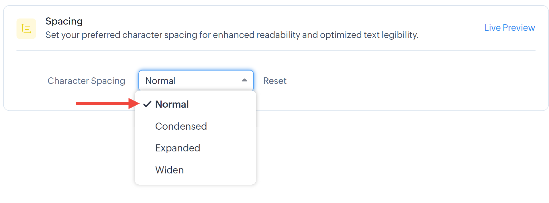 Pe lângă dimensiunea fontului, poți ajusta spațierea textului pentru a-i îmbunătăți lizibilitatea în CRM. Există patru opțiuni prestabilite disponibile pentru utilizatori: Condensed, Normal, Expanded și Widen.