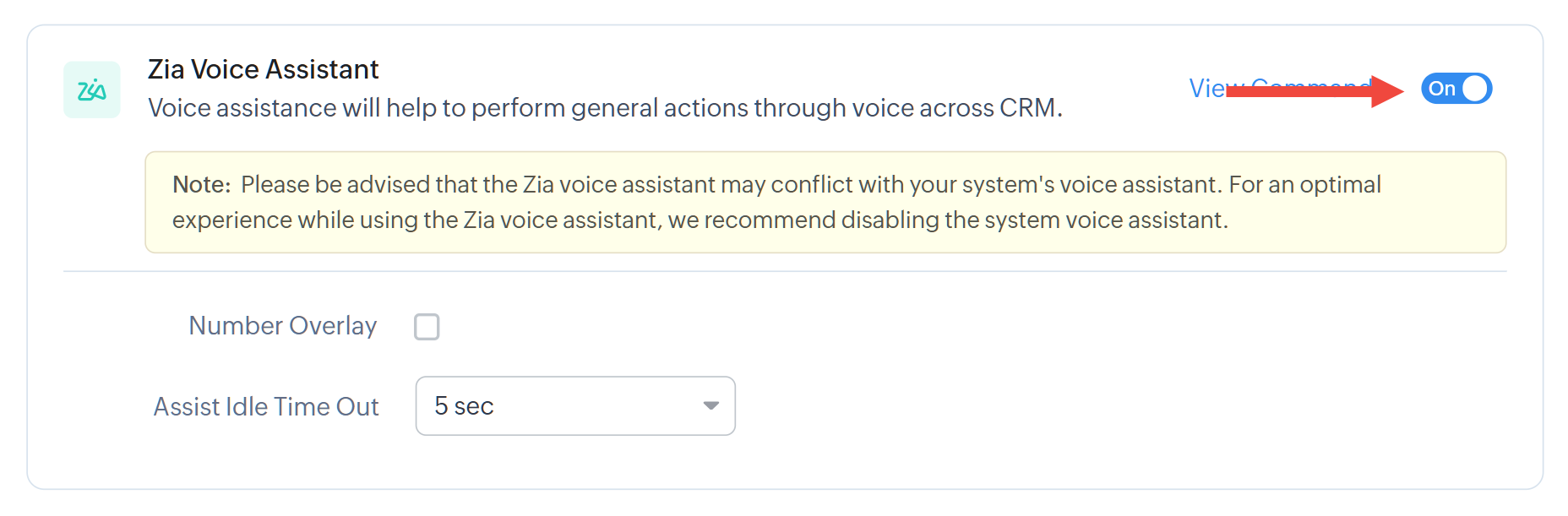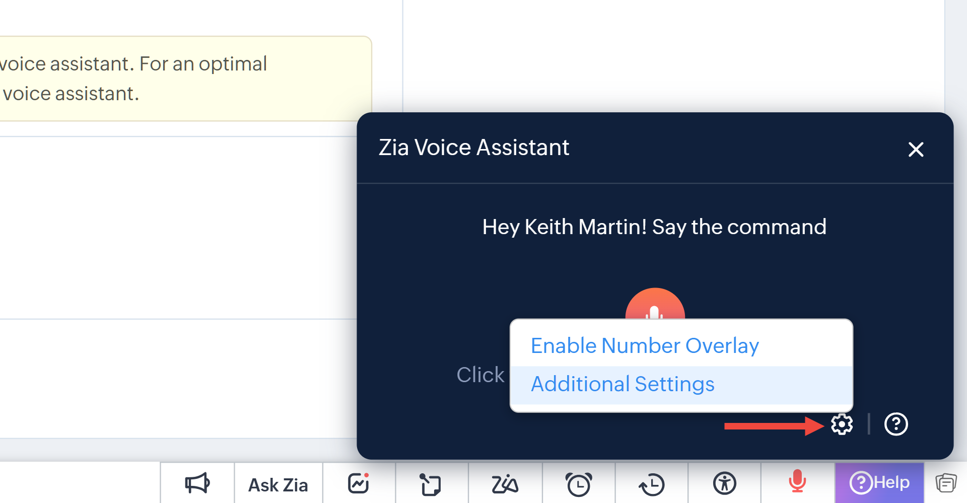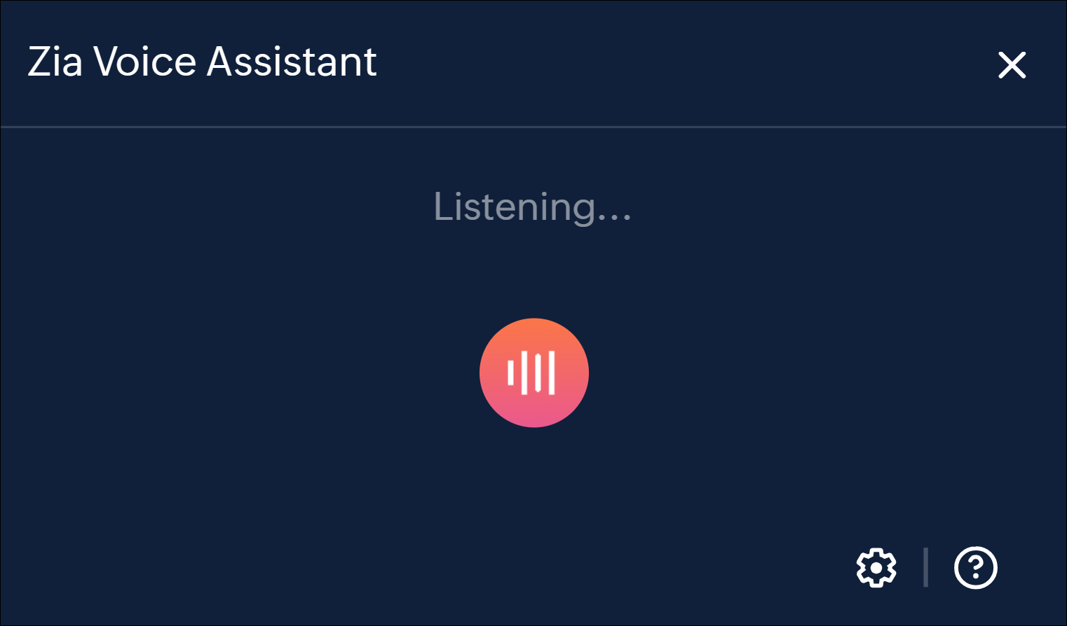 Zia Voice Assistant te ajută să controlezi CRM-ul folosind vocea. Odată ce l-ai activat, îl poți folosi când este necesar pentru a naviga și a efectua acțiuni asupra a ceea ce este afișat pe ecranul tău. Odată activat, poți folosi comenzi vocale predefinite pentru a naviga și a efectua acțiuni.