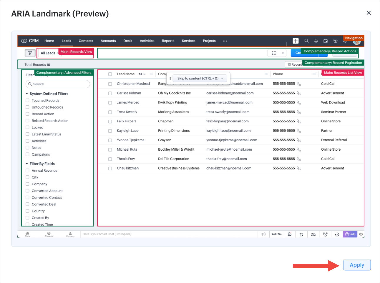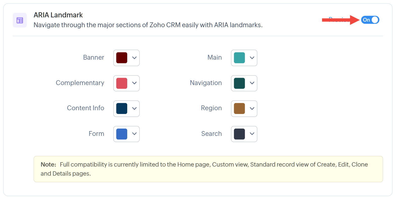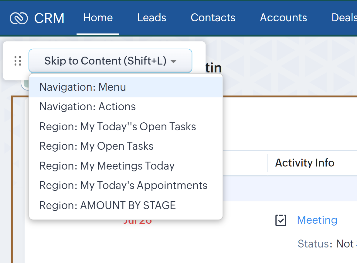 Zoho CRM este conform cu WCAG 2.2. Nivel AA.