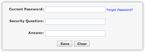 - În pagina Întrebare de securitate, specifică Parola curentă, Întrebarea de securitate și Răspunsul corespunzător.