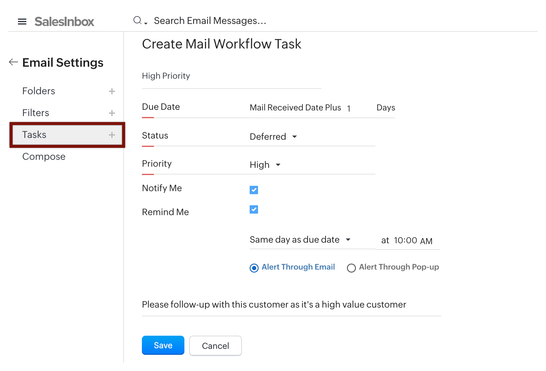 - Automatizarea sarcinilor din fluxul de lucru cu emailuri: Poți configura sarcini automate pentru emailurile primite pe baza datelor scadente, cum ar fi trimiterea de notificări, memento-uri și mesaje.