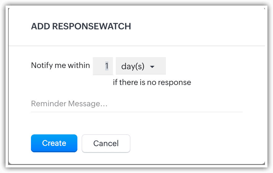 Asigură-te că nu ratezi niciodată o urmărire importantă adăugând ResponseWatch imediat după trimiterea unui email. Această funcționalitate te va notifica dacă destinatarul nu a răspuns într-un interval de timp specificat. Odată ce trimiți un email, vei primi opțiunea de a adăuga ResponseWatch pentru emailul trimis.